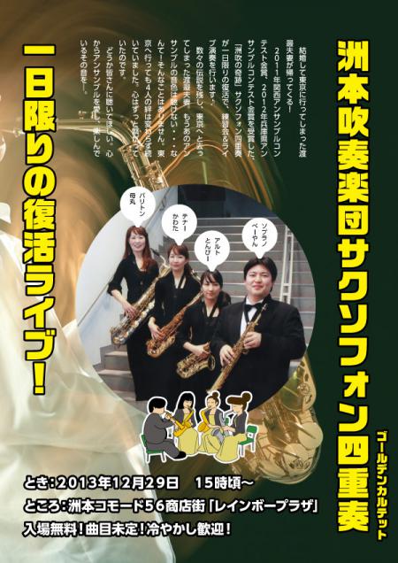Tカワタはお休みにて、サックスアンサンブルは休業となりました;;涙。